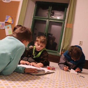 O víkendu jsme se s Blešivci a Bzučíky vydali na průzkumné cvičení Průzkuk II. do Písařova. V sobotu jsme šli na výlet, abychom objevili dělostřeleckou tvrz Bouda. Celým víkendem nás také provázely různé hry a aktivity, o kterých si můžete přečíst více na první fotce.